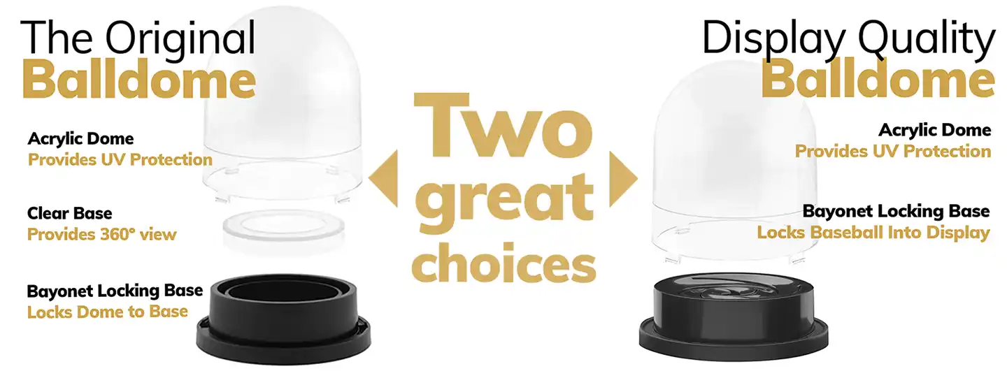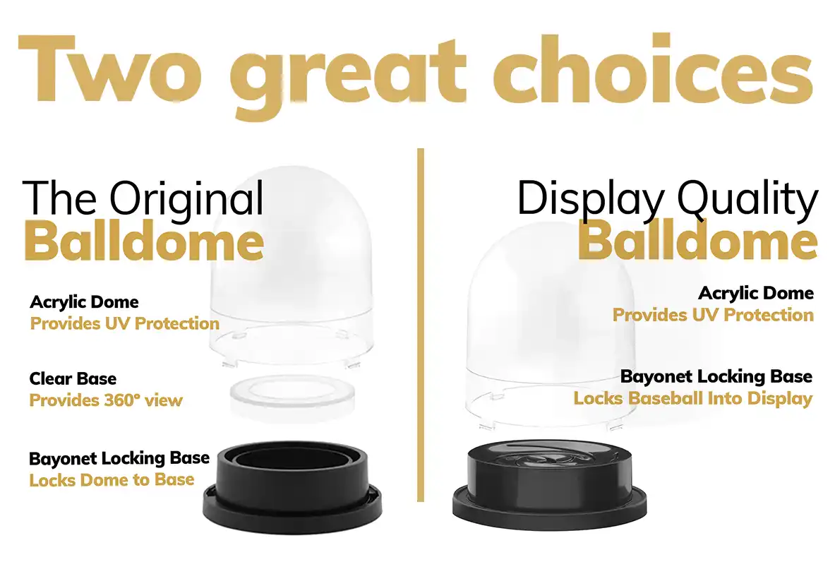The Original Balldome is our premium case a fully encapsulated display case with a clear base, bayonet locking mechanism, and the highest level of UV protection we offer. Everything fits tightly and feels solid in hand. This is the version people choose for autographed baseballs, premium gifts, and long-term displays where clarity and protection matter most.