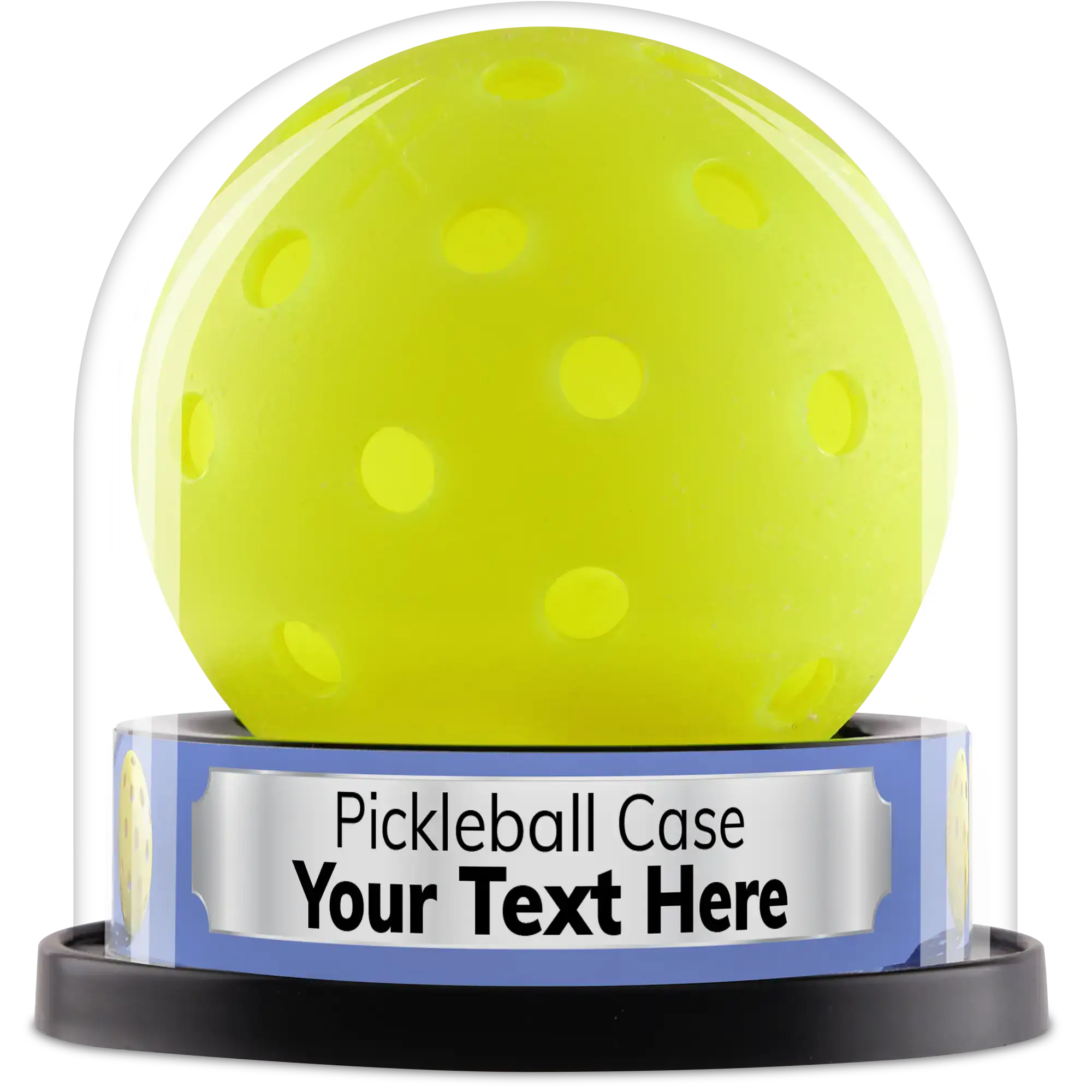 Custom Label for a Personalized Touch: Make your pickleball display case a one-of-a-kind with a free custom label that wraps around the base of the Balldome. Add your text, dates, or special achievements—perfect for commemorating a homerun ball or highlighting your autographed pickleball collectible.