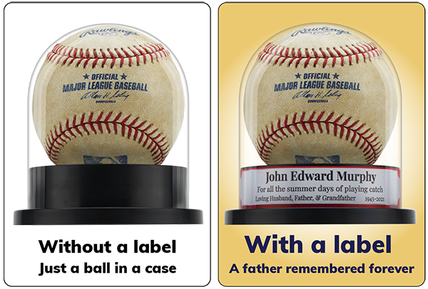 Opinion: Paid engraving is outdated, and printed tops lack versatility. Balldome’s wrap-around labels are a game-changer, letting players, parents, and collectors personalize their displays effortlessly. Design your label here and turn your baseball into a story that shines.