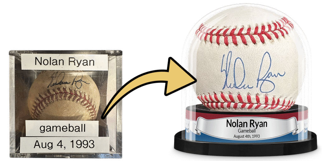 Many cases claim UV resistance, but results vary. Budget acrylic cubes (e.g., Ultra Pro’s $5–$20 holders) offer partial protection, while glass cases (sfDisplay.com’s $50–$200 displays) are inconsistent (Ultra Pro, sfDisplay.com). Polystyrene options like BCW’s Showcase provide decent UV blocking but lack the clarity of premium acrylic BCW Supplies. Balldome stands above the rest. Our Original Balldome uses UV-protected acrylic to block harmful rays, keeping signatures crisp and leather pristine. Even our budget-friendly Display Quality Balldome (polystyrene) outperforms most cubes with solid UV protection. And we recommend keeping all displays out of direct sunlight for extra safety.